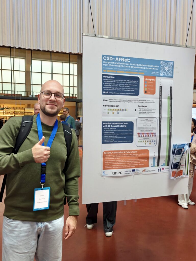 Lors de cette édition, l’équipe VasculAI a présenté un poster consacré au modèle CSD-AFNet, une architecture d’apprentissage profond particulièrement efficace pour l’analyse de signaux ECG, atteignant des performances de pointe. Le travail a été salué par de nombreux participants et collègues issus de différents départements.